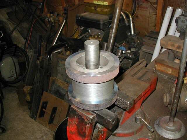 photo my oldest son is home from college and helping out boring the large hole in the disk.