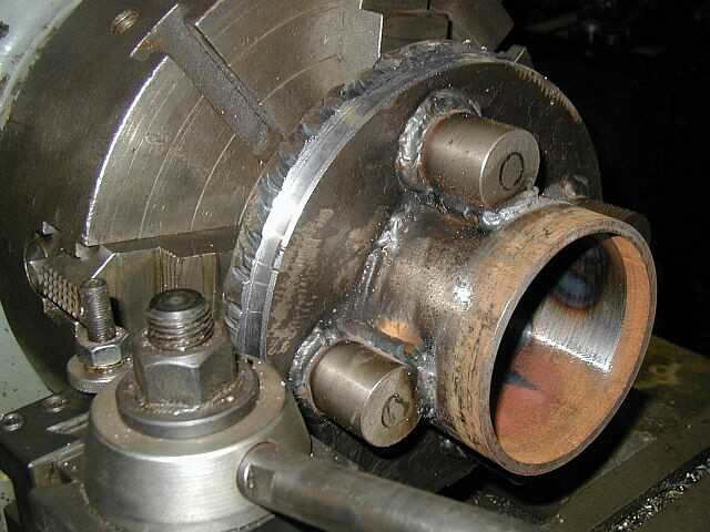 In the first photo you can see one of the disks set up in the lathe for boring. In the second