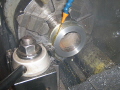 These (2) photos show the cylinder rotated around on the horizontal boring mill getting set up